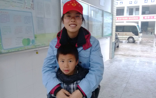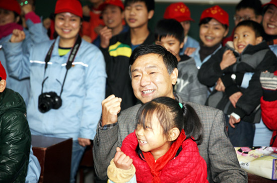 校長黃谷良先生與留守兒童和志愿者在一起。
